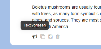 Sie können die KI-Antwort vorlesen lassen, kopieren, als Markdown speichern (eine Textdatei wird erzeugt) oder löschen.