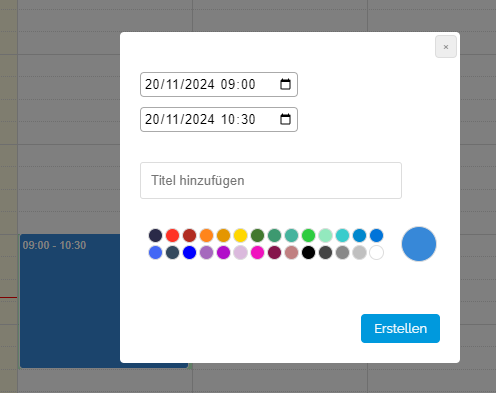 Ändern Sie die Zeiten nach Belieben. Fügen Sie den Titel hinzu. Wählen Sie optional eine Farbe aus.