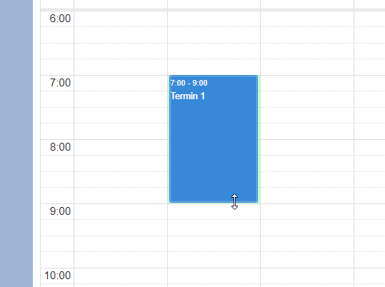 2. Länge des Termins - Bewegen Sie die Maus an das untere Ende des Termins. Fassen Sie das untere Ende an (Maustaste gedrückt halten) und verändern Sie die Länge des Termins.