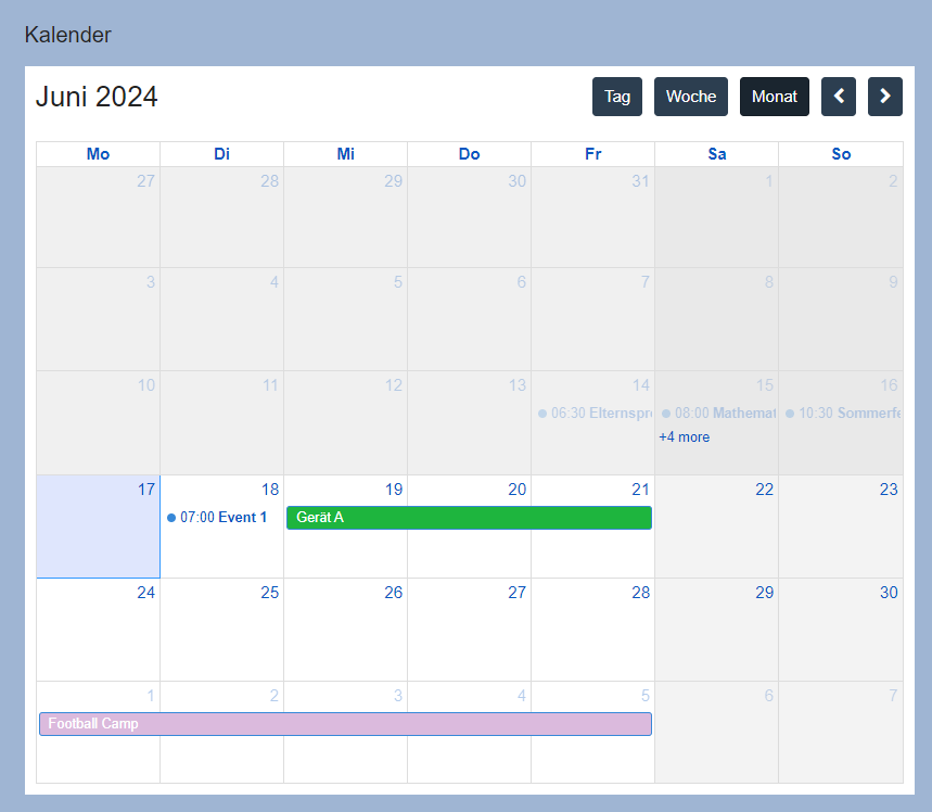 - Auf der Seite „Mein Kalender“ finden Sie Ihren Kalender, der alle Ihre Kalendereinträge kumuliert anzeigt inklusive aller Buchungen und Reservierungen, die Sie getätigt haben.