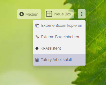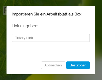 Klicken Sie auf „Tutory Arbeitsblatt“, dann erscheint ein Eingabefeld für den Tutory-Link.