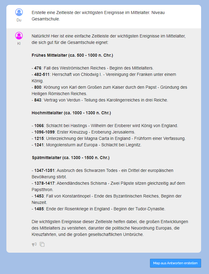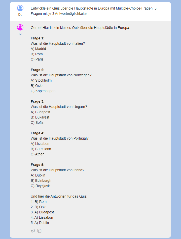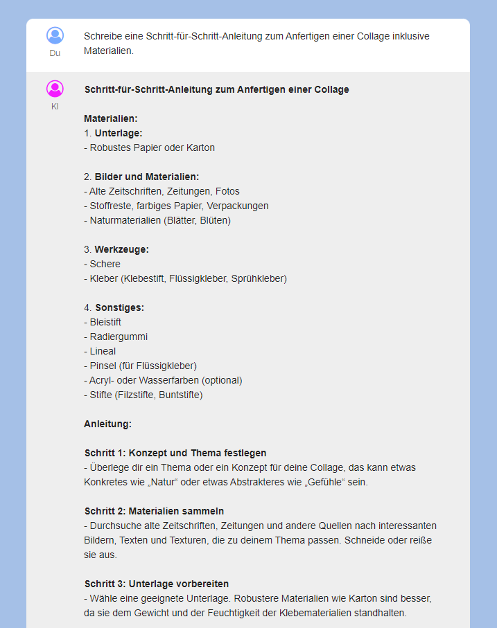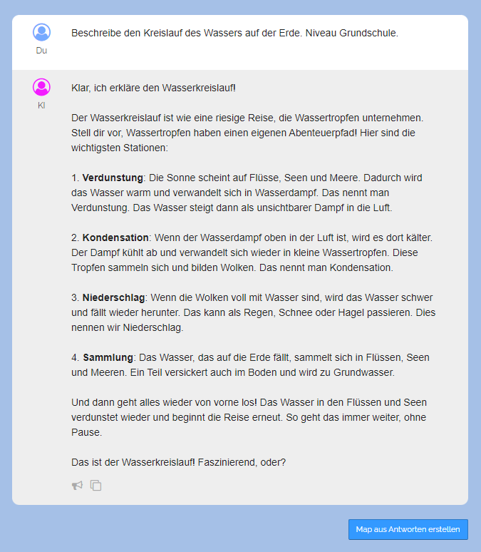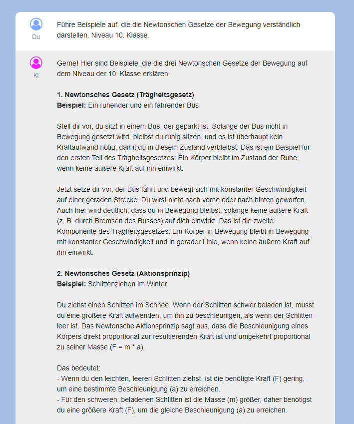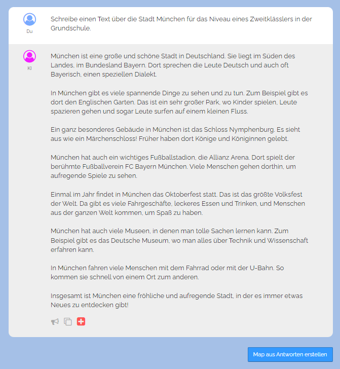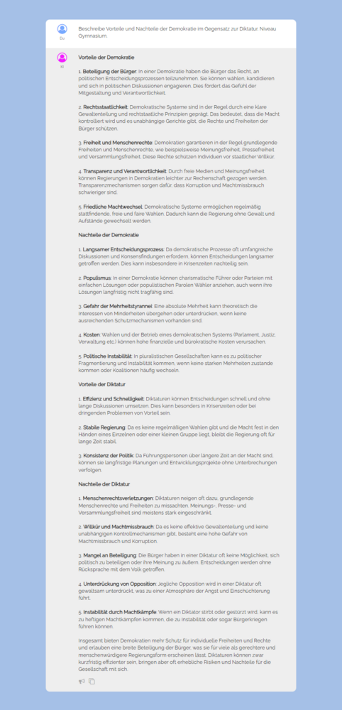 Diese KI-Antwort könnte zum Beispiel mit der Klasse in Gruppen diskutiert werden.