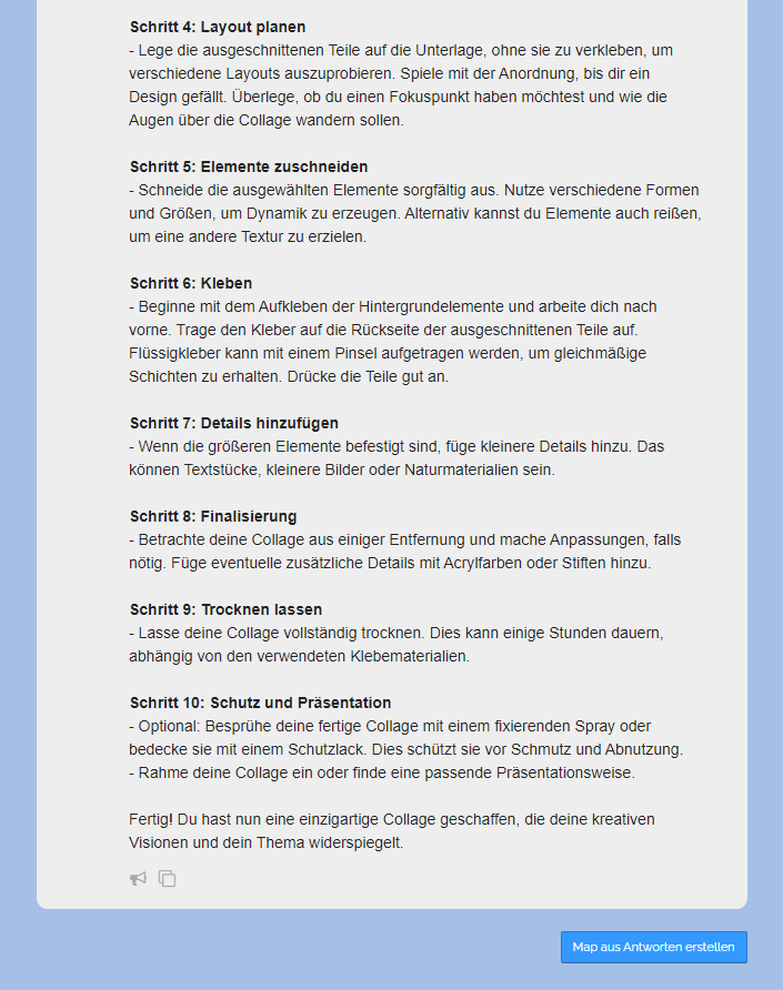 Schreibe eine Schritt-für-Schritt-Anleitung zum Anfertigen einer Collage inklusive Materialien.