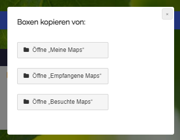 Um externe Boxen von anderen Maps zu kopieren, klicken Sie auf die drei Punkte rechts neben dem Button „Neue Box“. Daraufhin öffnet sich ein Dropdown. Wählen Sie dort „Externe Boxen kopieren“.