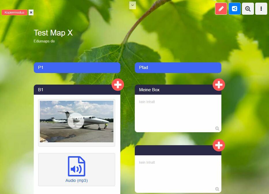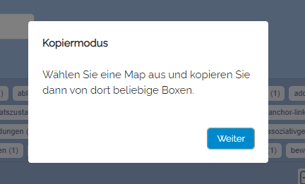 Wollen Sie keine Boxen mehr kopieren, können Sie links oben auf den roten Banner „Kopiermodus“ klicken. Dies beendet den Kopiermodus und Sie kehren zu Ihrer Map zurück.
