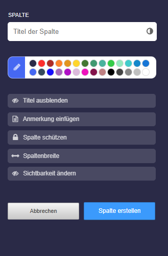 Sie können jeden Spaltentitel einfärben. Dazu stehen definierte Farben bereit.